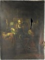 Portrait of the Hon. Mrs Stanhope, seated three-quarter-length, in a white dress, an extensive moonlit landscape beyond - (after) Sir Joshua Reynolds
