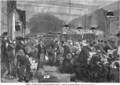 Interior of the Paris post office during the first week of January, the postmen room, engraved by Fortune Louis Meaulle 1844-1901 -