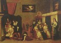 Elegant ladies visiting the mother of a new baby - (after) Hieronymus Janssens