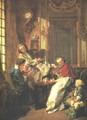 Nude Man seated and another standing, with a Woman and a Baby lightly etched in the Background - Rembrandt Van Rijn