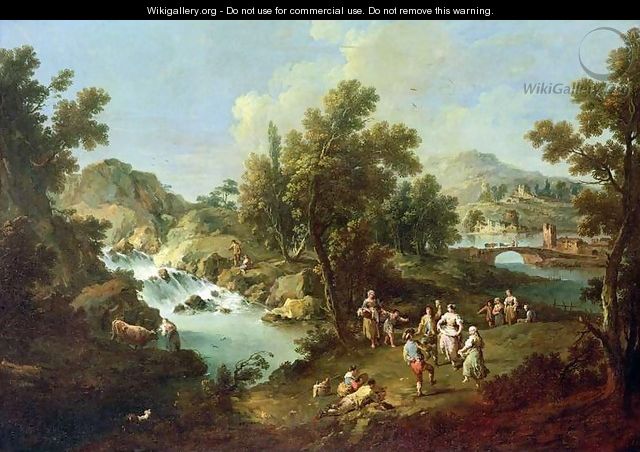 Order as handmade oil painting Landscape with a River and Dancing Peasants - Giuseppe Zais |