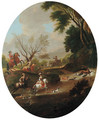 A stag hunt in a wooded river landscape - (after) Jan Wyck