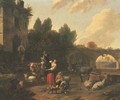 In Italianate landscape with herdsmen and cattle halting by a ruined mansion - (after) Dirk Van Bergen