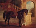 Adonis, a dark bay Hunter and Fido, a white Terrier, before a classical Terrace - John Frederick Herring, Jnr.