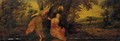 A wooded river landscape with a milkmaid, herdsman and cattle, a church beyond - Philip Jacques de Loutherbourg