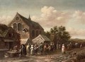 Travellers And Pack Animals Resting Before A Ruined Building, A Drover Watering His Cattle Beyond -