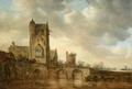 A Large House With A Tower, At The Edge Of A River Crossed By A Two-Arched Stone Bridge, Three Men In A Rowing Boat Below - Jan van Goyen